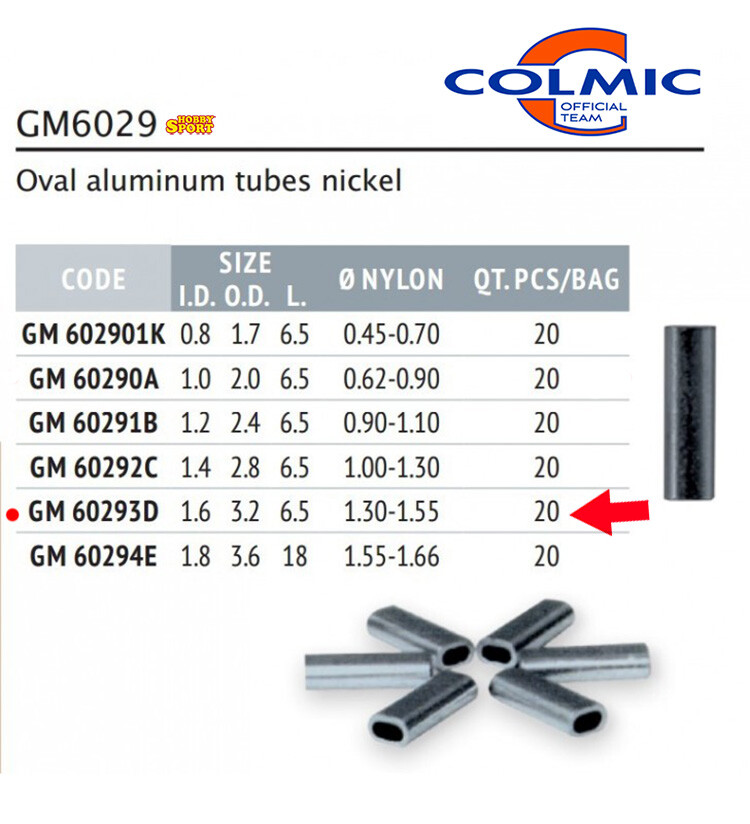 2 CONF. GM 6029 OVAL ALLUMINUM TUBES SIZE D TUBETTO x STRINGERE FILO 1,30-1,55mm